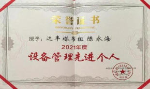 陳永海經(jīng)理在三澳核電項(xiàng)目部通過(guò)自身不斷努力,精心打造一批專(zhuān)業(yè)的塔吊團(tuán)隊(duì),贏得中廣核領(lǐng)導(dǎo)和項(xiàng)目部領(lǐng)導(dǎo)對(duì)塔吊隊(duì)工作的肯定及認(rèn)可,2021年度不僅自己榮獲中國(guó)核工業(yè)華興建設(shè)有限公司頒發(fā)的“2021年度設(shè)備管理先進(jìn)個(gè)人”的榮譽(yù)證書(shū):