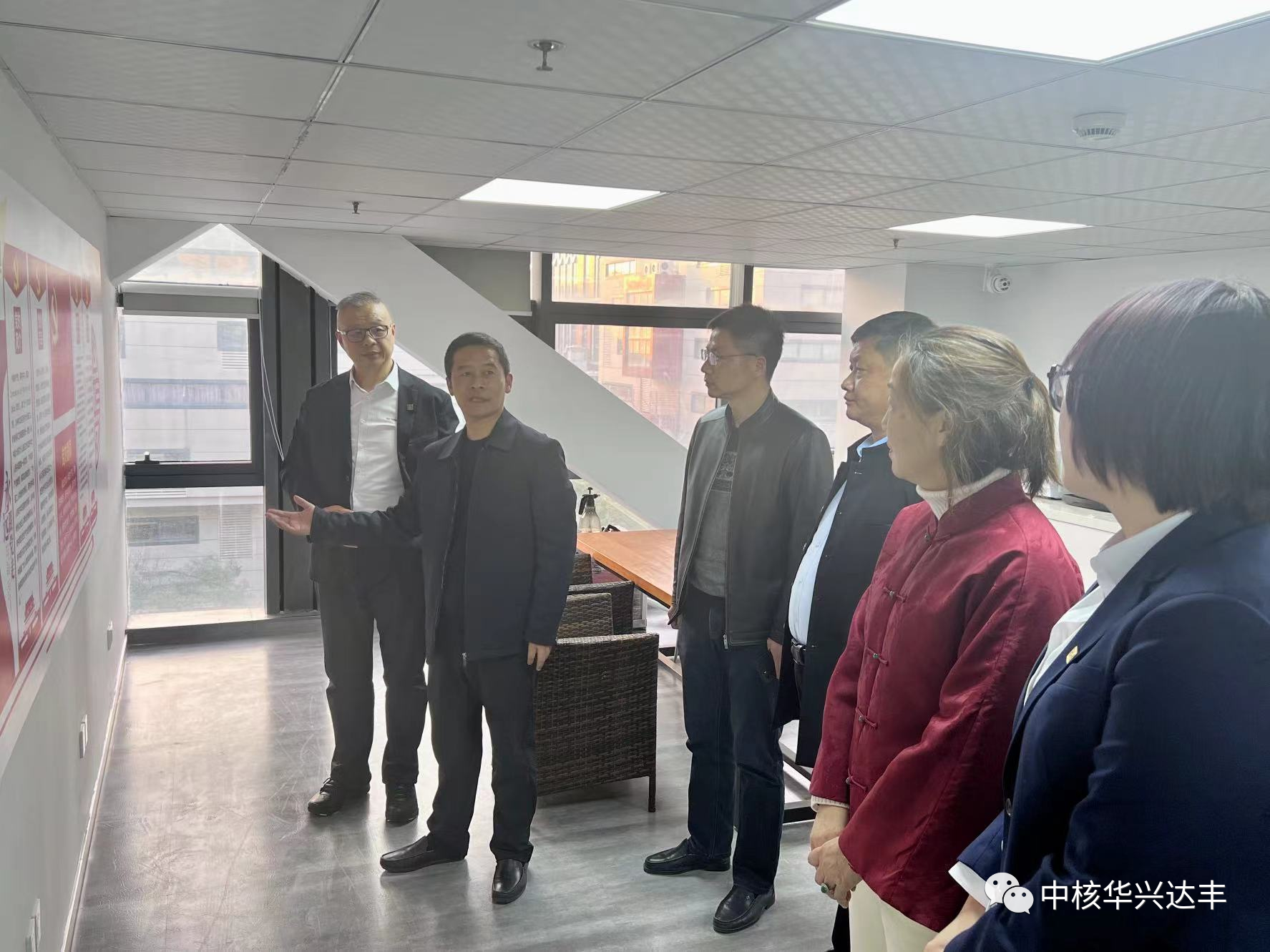 2023年2月20日下午,儀征市政協(xié)副主席、儀征經(jīng)濟(jì)開發(fā)區(qū)管委會副主任、新集鎮(zhèn)黨委書記劉昌金率隊蒞臨中核華興達(dá)豐上??偛拷涣髦笇?dǎo)。中核華興達(dá)豐董事兼總經(jīng)理朱輝帶領(lǐng)公司相關(guān)管理人員出席接待。雙方溝通交流之后,由朱總帶領(lǐng)儀征市新集鎮(zhèn)政府領(lǐng)導(dǎo)一行參觀總部新址辦公區(qū)域。