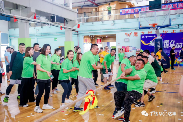 運動會的壓軸項目必然是拔河比賽。各公司代表組成的隊伍,“工”部式擺好姿勢,聚精會神共同發(fā)力,只為在千鈞一發(fā)的時刻,共慶勝利的喜悅。
