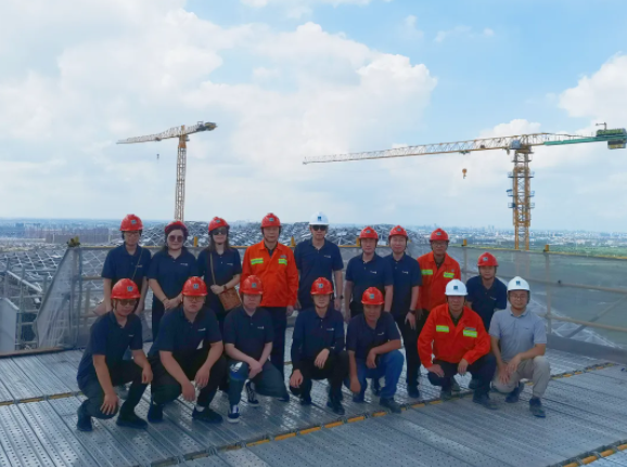 2024年8月29日,中核華興達(dá)豐機(jī)械工程有限公司組織G60科創(chuàng)走廊二期屋頂殼體項(xiàng)目STL420A-25t塔機(jī)安裝觀摩活動,中核華興達(dá)豐戰(zhàn)略委員會副主任、副總經(jīng)理鄭興瑞,副總經(jīng)理陳先勇,副總經(jīng)理、能源電力工程事業(yè)部總經(jīng)理金久富率隊(duì)至項(xiàng)目安裝現(xiàn)場觀摩學(xué)習(xí)和交流。