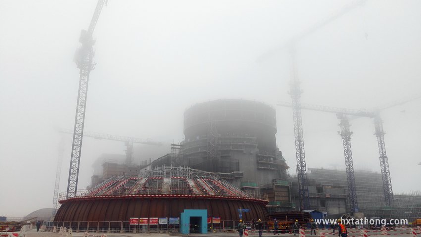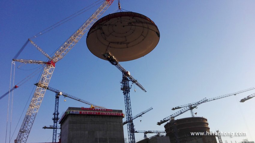 2017年4月12日,早上6時,隨著吊裝總指揮的一聲令下,重達(dá)166噸的穹頂由CC6800型履帶吊緩緩吊起,通過起鉤、回轉(zhuǎn)、落鉤、變幅等一系列施工,于7時02分成功吊裝就位,安全質(zhì)量滿足要求。這一歷史性的一刻,與中核華興達(dá)豊紅沿河核電項(xiàng)目部全體人員的不懈努力不可分割。